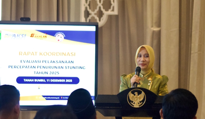 BATULICIN, GK -Bupati Tanah Bumbu, Andi Rudi Latif, AMd.T., SH., MM, melalui Kepala Dinas Pemberdayaan Perempuan, Perlindungan Anak, Pengendalian Penduduk dan Keluarga Berencana (DP3AP2KB), Erli Yuli Susanti, resmi membuka kegiatan Evaluasi Pelaksanaan Percepatan Penurunan Stunting Kabupaten Tanah Bumbu Tahun 2025 di Comation Ballroom Hotel Lotus, Kamis (11/12/2025).